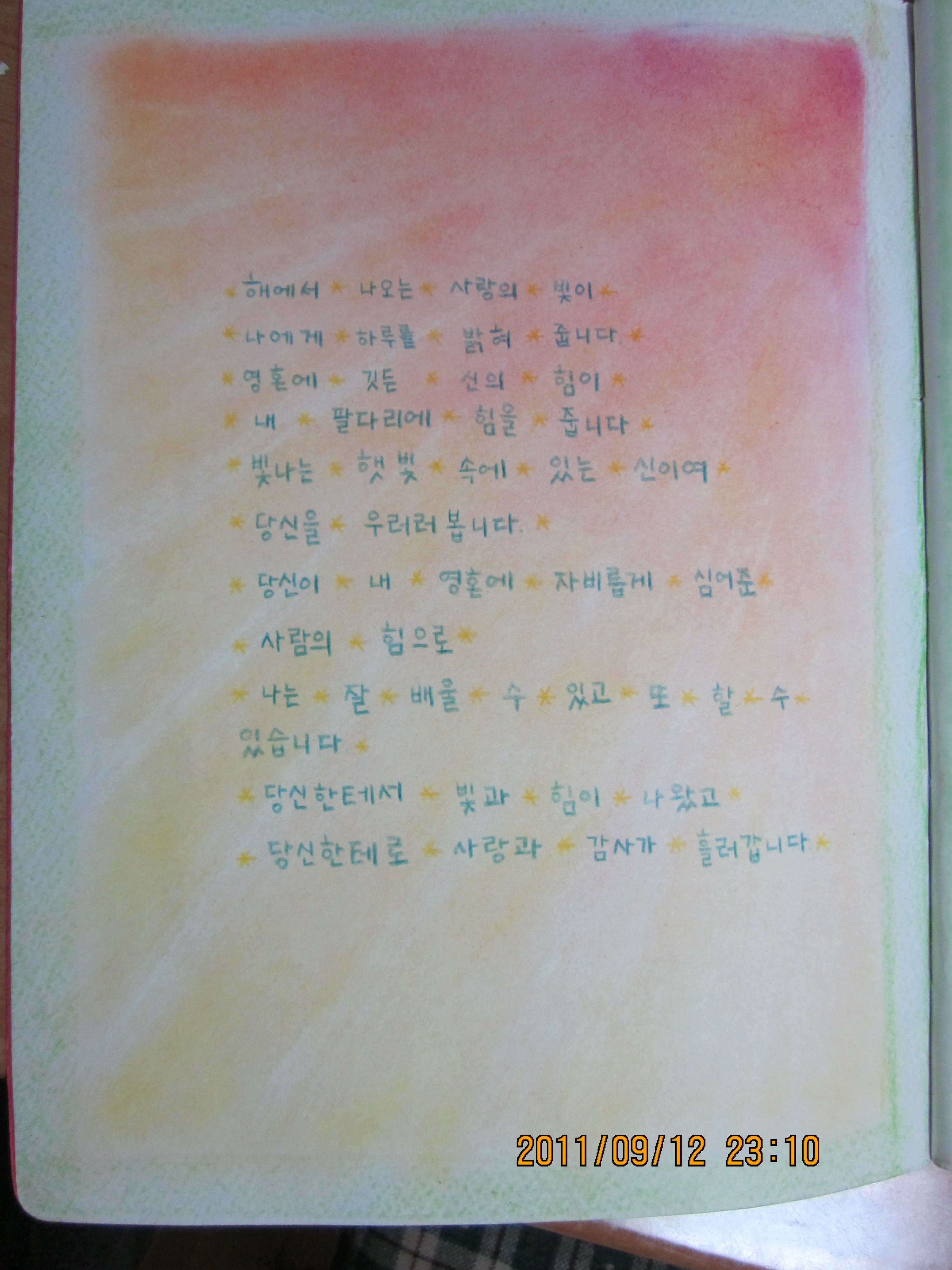 | 9 | [re] 창세기 수업 끝난 뒤 아이들이 지은 시입니다. | 김혜정 | 2011.05.18 | 2312 |